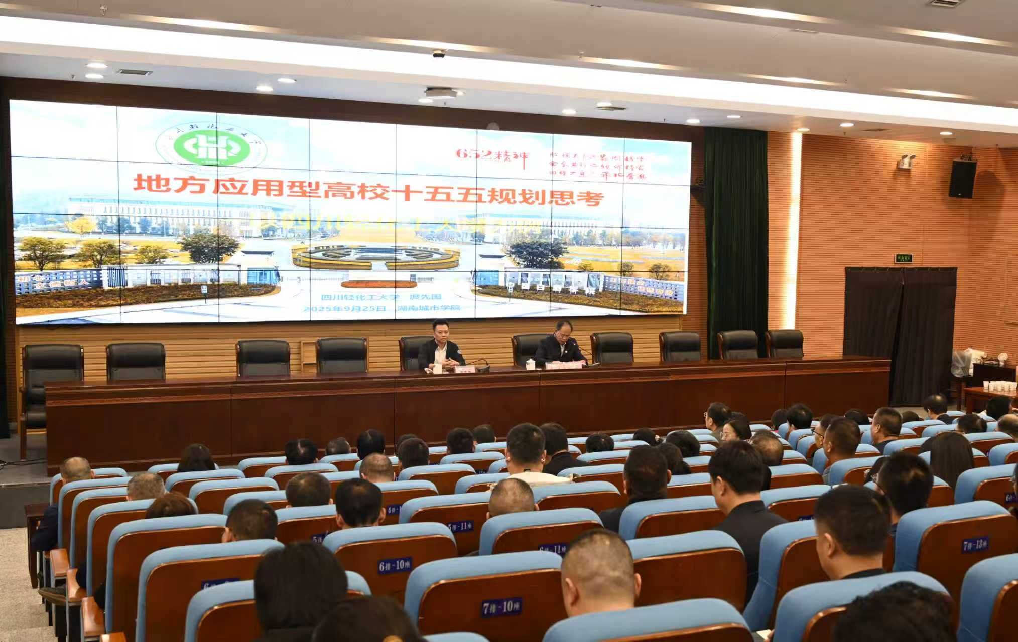 会议第一阶段由党委书记何振主持,四川轻化工大学原党委副书记、校长庹先国教授作专题报告。庹先国以《地方应用型高校十五五规划思考——以四川轻化工大学为例》为题,深入分析了强国教育背景下地方高校战略规划的背景、重要性和重点,他从学科专业建设、人才队伍培养、产学研合作、校园文化建设等多个方面分享了四川轻化工大学的实践探索和创新举措。